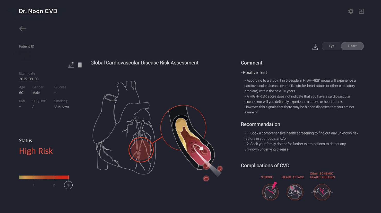 - Co s výsledky screeningu Dr.Noon? Jakmile AI vyhodnotí jakékoli možné riziko, doporučíme Vám návštěvu ke specialistovi - oftalmologovi nebo vašemu praktickému doktorovi.